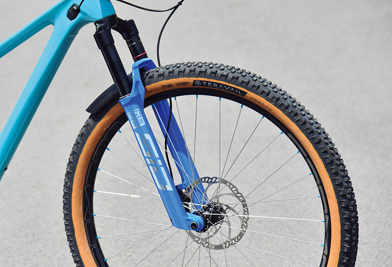サスペンションはXC 系フォークのフラッグシップ、ロックショックスのSID アルティメイト。軽量&高剛性を両立しストイックなペダリングにも応えてくれる逸品だ。