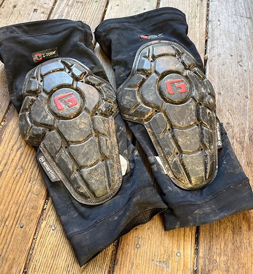 スコーミッシュではこのニープロテクターのみで走っていますが、人によってはエルボーやボディも使っています。
