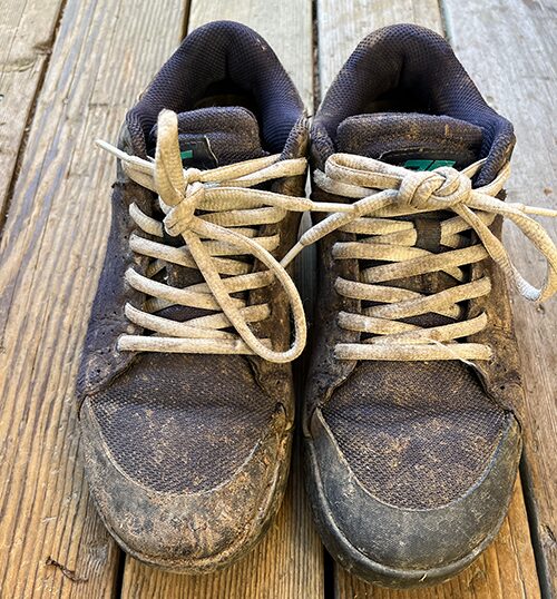 こちらはいただきものなのでモデル名不明ですが、以前使っていたクライミングのアプローチシューズとは比べものにならないほど、ペダルへのグリップ感(吸いつき感)が最高!