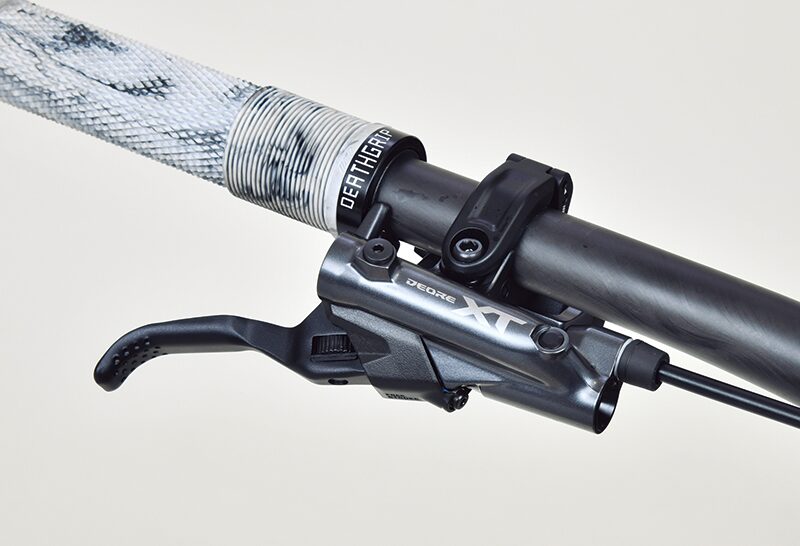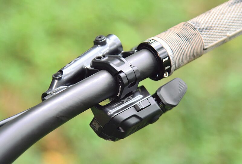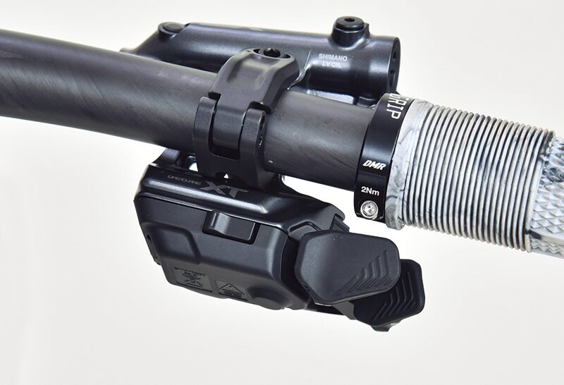 SHIMANO RAPID ESを搭載したシフトスイッチ。取付位置が広範囲かつボタンも機能や角度の変更が可能で、ライダー好みの操作環境に細かくカスタマイズできる。