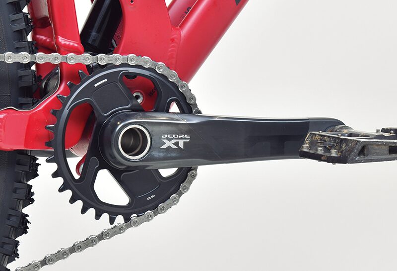 XTRのデザインを踏襲しつつ、剛性と重量のバランスが最適化されたクランクセット。1種類でトレイル、エンデューロ、クロスカントリーライディングに対応する。
