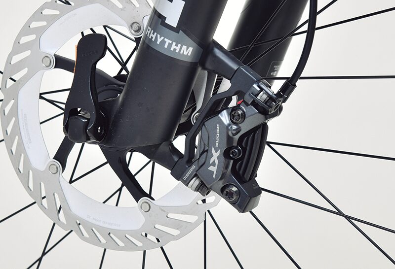 編集部のテストバイクにはフロントにトレイル/エンデューロ向けの対向4ピストン、リアにXCレース向けの軽量な2ピストンキャリパーを装着している。