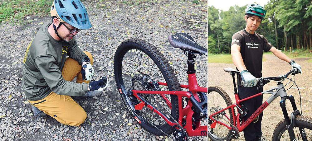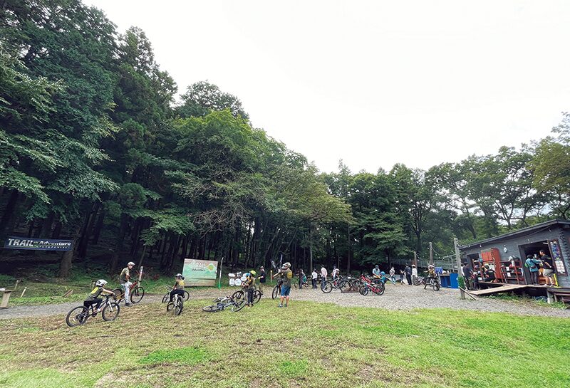取材日は秋川マウンテンバイクスクールのメンバーと来場。地元の里山をメインで走っているそうですが、お子さんが生まれてからはスクールの練習やイベントでも一緒に乗るようになりました。