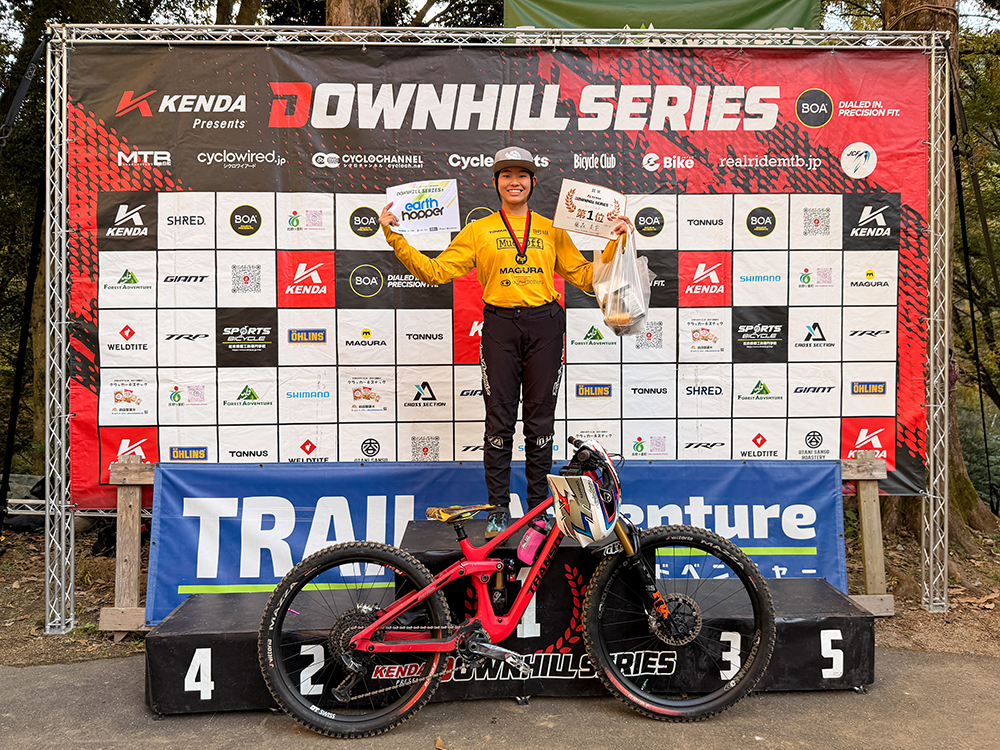 「最終戦で勝てて、シリーズチャンピオンも獲れて嬉しいです。今回のコースはアップダウンが激しくて好きなタイプのコースでしたが、スピードを出しにくいセクションも多く、昨日は木に当たるクラッシュもあってなかなかリズムが掴めませんでした。今シーズンは、予選は良いのに決勝で転ぶことが多かったんですが、克服するためにトレーニング方法を変えてみたり、メンタルの部分でも考え方を変えたりして、力まず軽い気持ちで走るようにしたのが良かったかなと思います。今日は自分のなかではパーフェクトランでした。」と幾田選手。