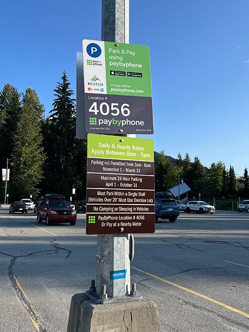 ウィスラーには滞在せずにクルマで訪れる場合は、Day Lots 1〜5の駐車場を使うとビレッジまで近いです。Lot の数字が大きくなるにつれてビレッジからは遠ざかりますが、駐車料金は安くなります! ちなみに駐車場の支払いはアプリやウェブからのオンライン決済。