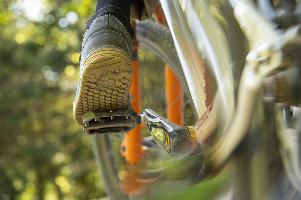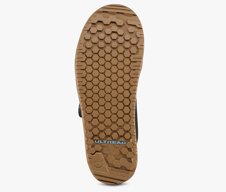 フラットペダルでのライディングに最適な、シマノULTREAD GFラバーコンパウンドとトレッドパターン