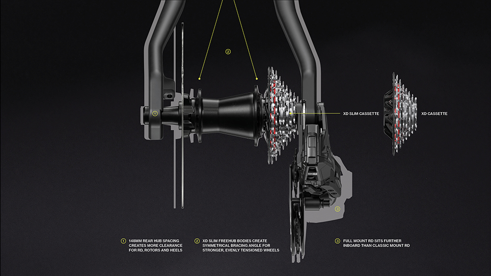 フルX-SYNC歯形状を採用し、これまでにないほど高変速性能と耐久性を両立した。負荷をかけたまま変速できるトランスミッションの性能は「可能」なだけでなく、「より優れた」ものへと進化。減速時にも一切力を抜く必要がなく、ライバルよりも早く次のスプリットに到達できる。ハブ規格に合わせて、XDとXD SLIMの2種類をラインアップする。