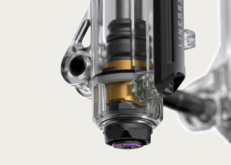 ・新型LinearXLエアスプリングは、一貫性と予測性に優れたライドフィールを実現し、固定式ボトムアウトシステムにより終端ストロークをコントロール