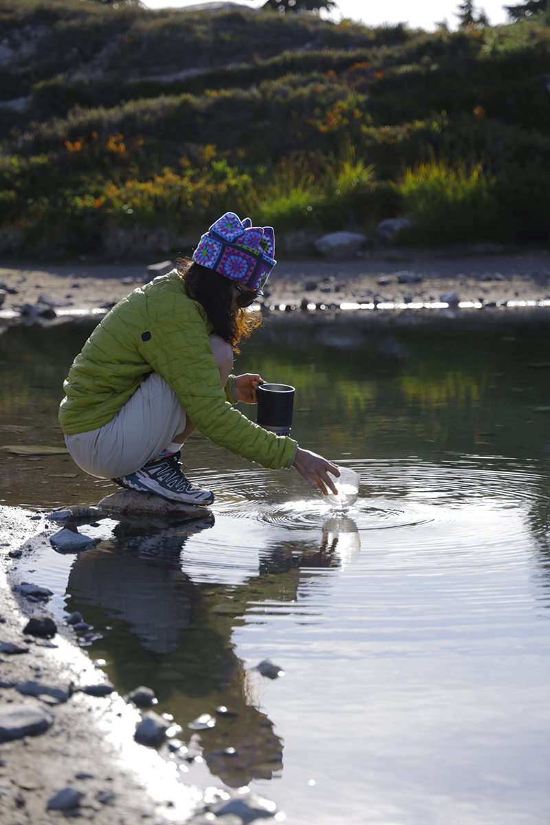 前編でダイブした湖の隣にある、「飲水用・遊泳禁止」の湖から今夜の水を確保。私たちはすべて煮沸してから飲みましたが、フィルターを使う人もいるようです。