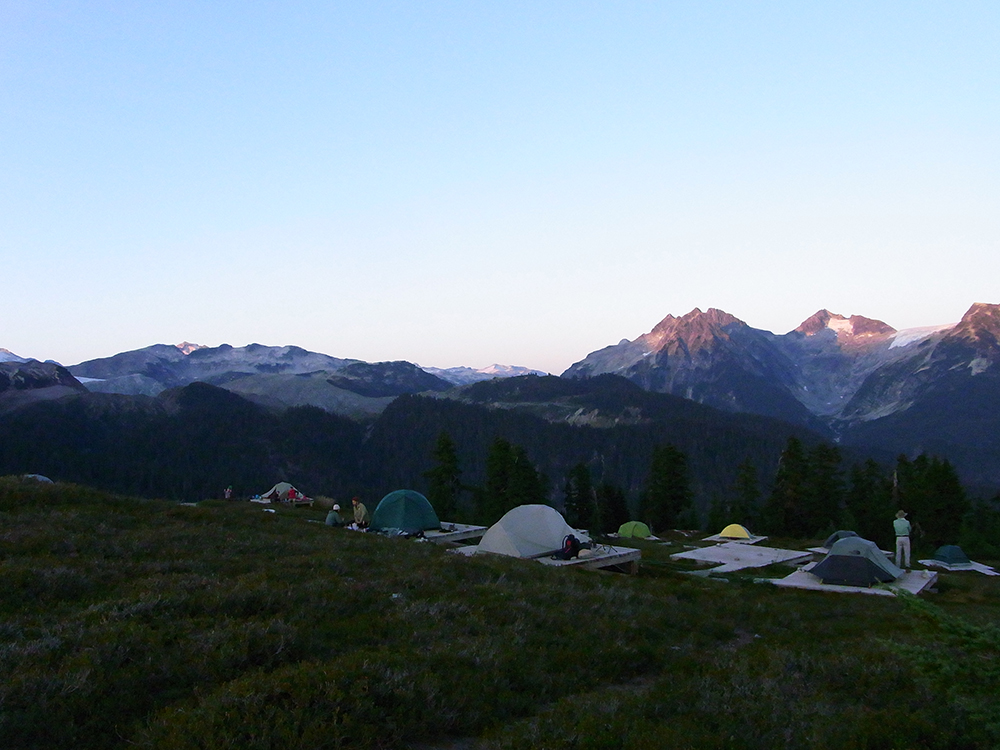 荷物を背負っての3時間のアップヒル。軽量テントとはいえ、バックパックを下ろした瞬間の解放感はたまりません。まずは、あとでのんびりする時間を確保するためにテントを設営します。
