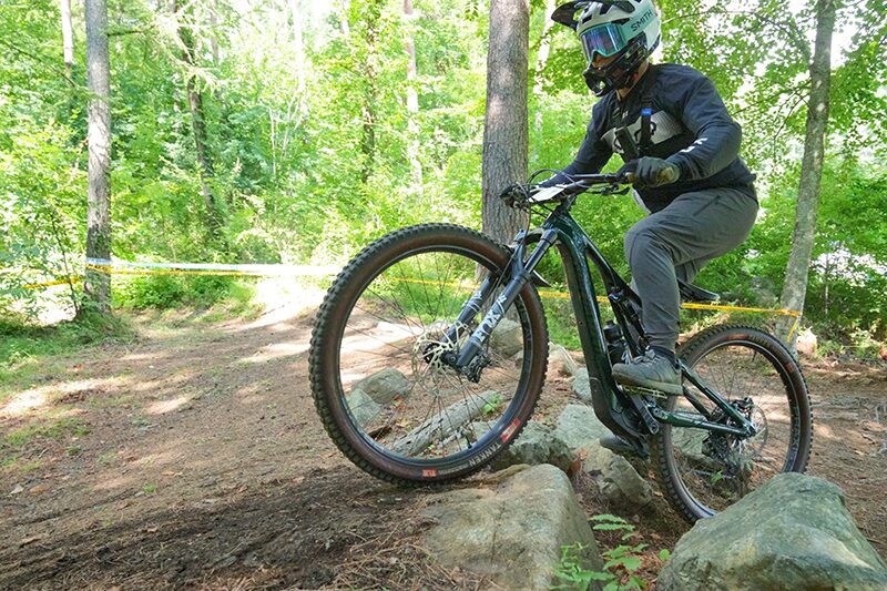 登りと下りの両方でE-MTBの特性をうまく引き出せるかがカギ。初級者から上級者まで幅広いレベルが挑戦しやすい競技として展開します。