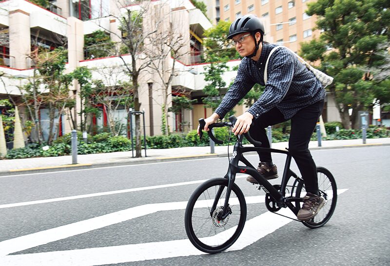 板状に加工した竹を何層にも重ね、熱をかけてプレスした積層材を使用。素材が持つしなやかさと柔軟性によって生まれる"しなり"により、カーボンや金属ハンドルでは真似のできない高い振動吸収・減衰性能を実現する。この"しなり"によって手や肩が受ける振動や衝撃を効果的に緩和することで身体へのストレスや負担を軽減。快適な走りを提供する。