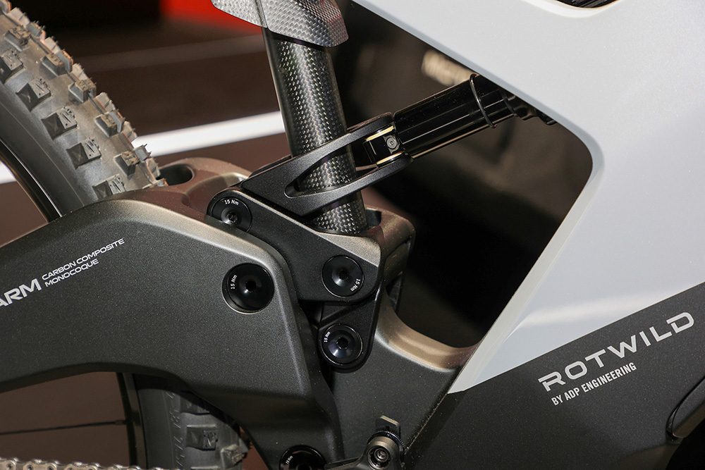 フロント29”/リア27.5”のマレット仕様。コンセプトの高圧鋳造アルミフレームに代わり、カーボン製フレームとスイングアームの採用で重量は23kg台。