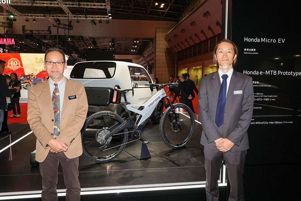 先日のJapan Bike Showで、既存の自転車を電動アシスト化・コネクテッド化するサービス「SmaChari(スマチャリ)」を公開したホンダは、前回のモビリティショーで展示された「Honda e-MTB Concept」を発展させる形で開発された「Honda e-MTB Prototype」を展示。