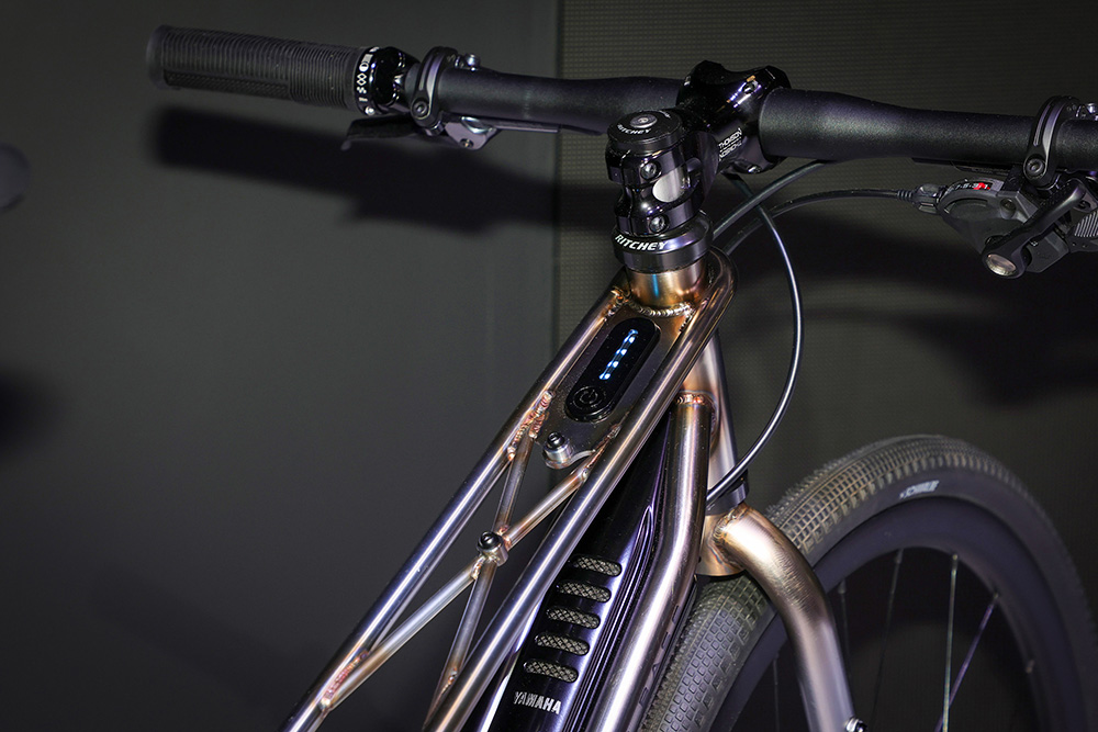 前回は分割式ドライブユニットのeMTB、Y-00Z MTBと二輪駆動のY-01W AWDを展示したヤマハですが、今回はシンプルなスチール製フレームに軽量アシストユニットとスリムなバッテリーを搭載したコンセプトモデル「Y-00B:BASE」とカスタマイズ提案の「Y-00B:Bricolage(ブリコラージュ)」を展示。