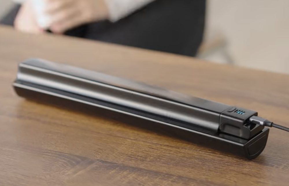 デュアルツインフレームにマウントされるT字型のバッテリー。USB-PDコンバーターが付属するので外出先でも充電が可能です。