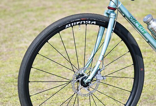 ロードバイクとランドナーの中間的なジオメトリーを持つトラディショナルなクロモリフレームをベースとしてセレクトし、マヴィックの完組ホイールやマイクロシフトの変速コンポーネントなど、これまであまり使用してこなかったアイテムをあえて投入した。