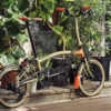 ターン・ヴァージュN8をベースに、ドロップハンドルとSTIレバー、フロントダブルのチェーンリングを組み込んで小径ロード化。「フラットハンドルバーのミニベロをドロップハンドル化したりフロントダブル化したりして小径ロードにカスタムするというニーズが多いので、このパッケージでショップオリジナル完成車として展開することにしました」と渡辺店長。