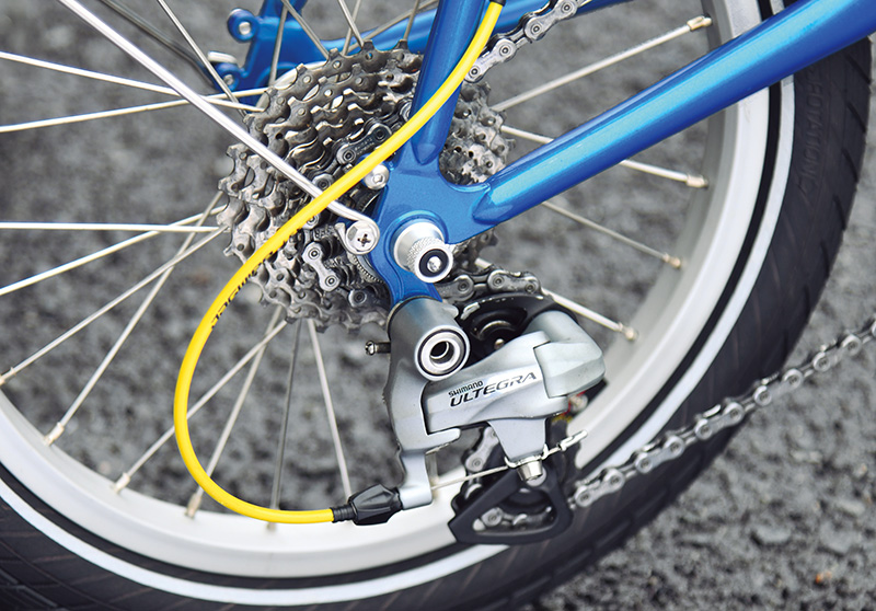 ディレイラーとスプロケットを再利用することで10 速化。ダブルレバーにて変速操作する仕様に。