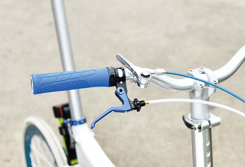 「夏をイメージさせる車体に仕上げたい」というオーナーの希望を叶えるべく、サイクルハウスしぶやが仕上げたこのバーディーエアは、ブラックパーツを排除しつつ各部にブルー系アルマイトのパーツを散りばめることで、爽快なルックスを手に入れた。