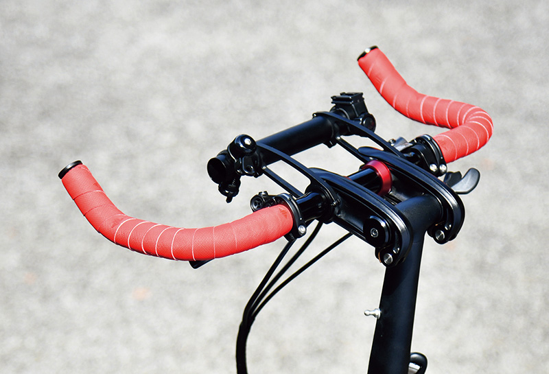 コクピットまわりはヒルクライムに対応する仕様へ。ブルホーンバー&ターン純正アンドロスステムをセットすることで、狙い通りの乗車ポジションを手に入れた。