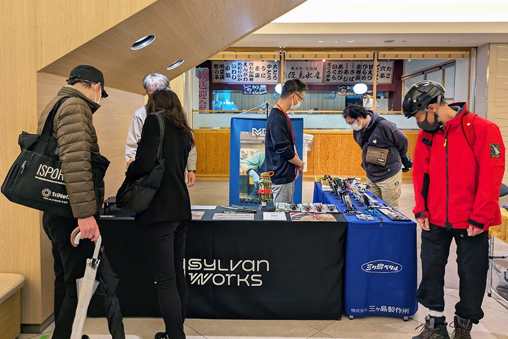 館内エリアにはパーツやグッズ、ウエアなどの展示・販売ブースが。快適に自転車に乗るためのアイテムや愛車を自分好みにするためのカスタムパーツなど、自転車ライフを彩るすてきなアイテムとの出会いに、財布の紐が緩くなる購入者が続出!